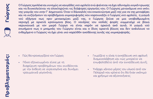 Γιάννη) στη συμπεριφορά τους και η πρακτική σύνδεση του υλικού με αυτές τις περιπτώσεις.